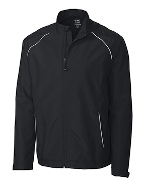 Mock neck~Full zip~On-seam zippered pockets~Reflective trim~Adjustable cuff~Adjustable drawcord hem~Fully lined~Zipper in lining for embroidery access~C&B pennant heat transfer at back neck~Breathable~Light weight~Wind and water resistant