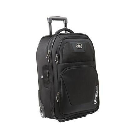 Kickstart your trip with a bag that holds all your gear and expands for even greater capacity. | 1,680D poly/900D poly Locking retractable handle for optimum mobility Fully lined interior for clothes, toiletries and other travel accessories Garment compression straps Large exterior zippered pockets Custom OGIO identification sleeve Strong, durable grip handle on foot, soft grip handles on top for easy lifting Two protective runners In-line skate wheels Dimensions: 22'h x 14'w x 10'd (expanded) Capacity: 3,076 cu. in./50.4L Weight: 8.2 lbs./3.7kg Bags not intended for use by children 12 and under.